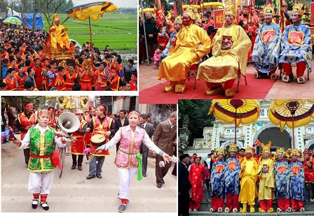 Lễ hội diễn ra trong không khí trang nghiêm mà náo nhiệt, chiêng trống nổi liên hồi. Ai nấy đều hồ hởi dõi theo. Đám rước kiệu đi trong tiếng nhạc của phường bát âm và tiếng chuông, trống. Sau lễ rước là các hoạt động nghệ thuật: hát tuồng, hát quan họ, hát chèo; các trò chơi dân gian đấu vật, đi cà kheo, cờ người khiến lễ hội càng thêm rộn rã, tươi vui.