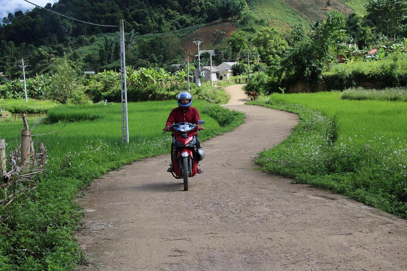 Đường giao thông nông thôn được bê tông kiên cố hóa giúp người dân đi lại thuận lợi. |