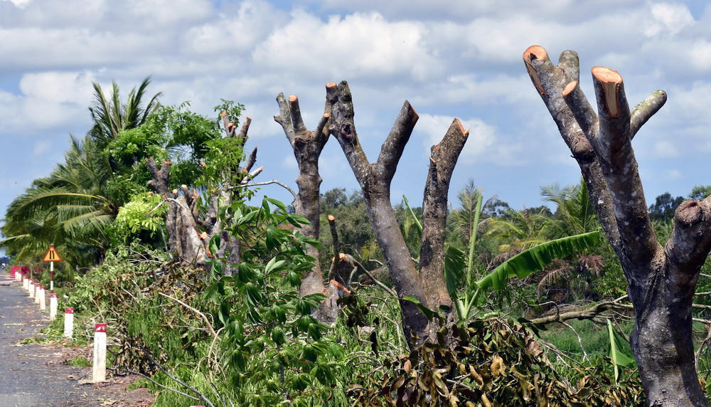 Tuy nhiên, ghi nhận của Phóng viên trên tuyến đường được UBND huyện Trần Văn Thời chỉ đạo (đoạn từ cầu Co Xáng, xã Trần Hợi đến ấp Đá Bạc, xã Khánh Bình Tây) phần lớn các cây đã bị cắt trụi đọt, nhánh, có cây còn bị cắt gần nữa thân cây.