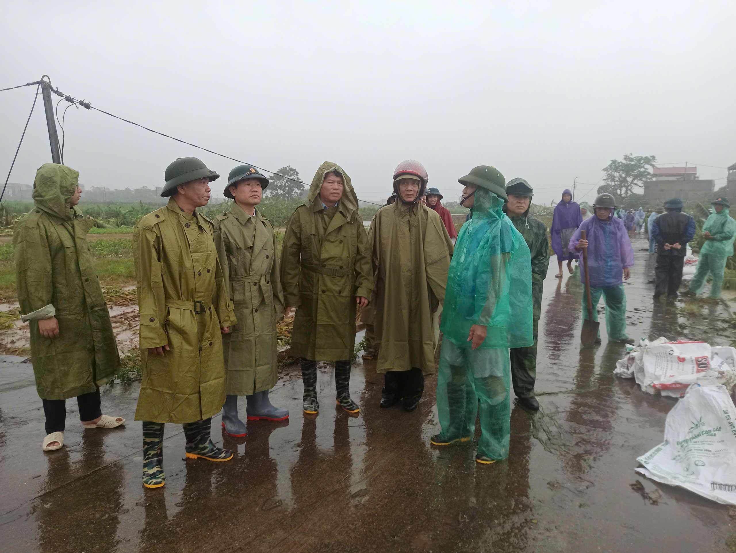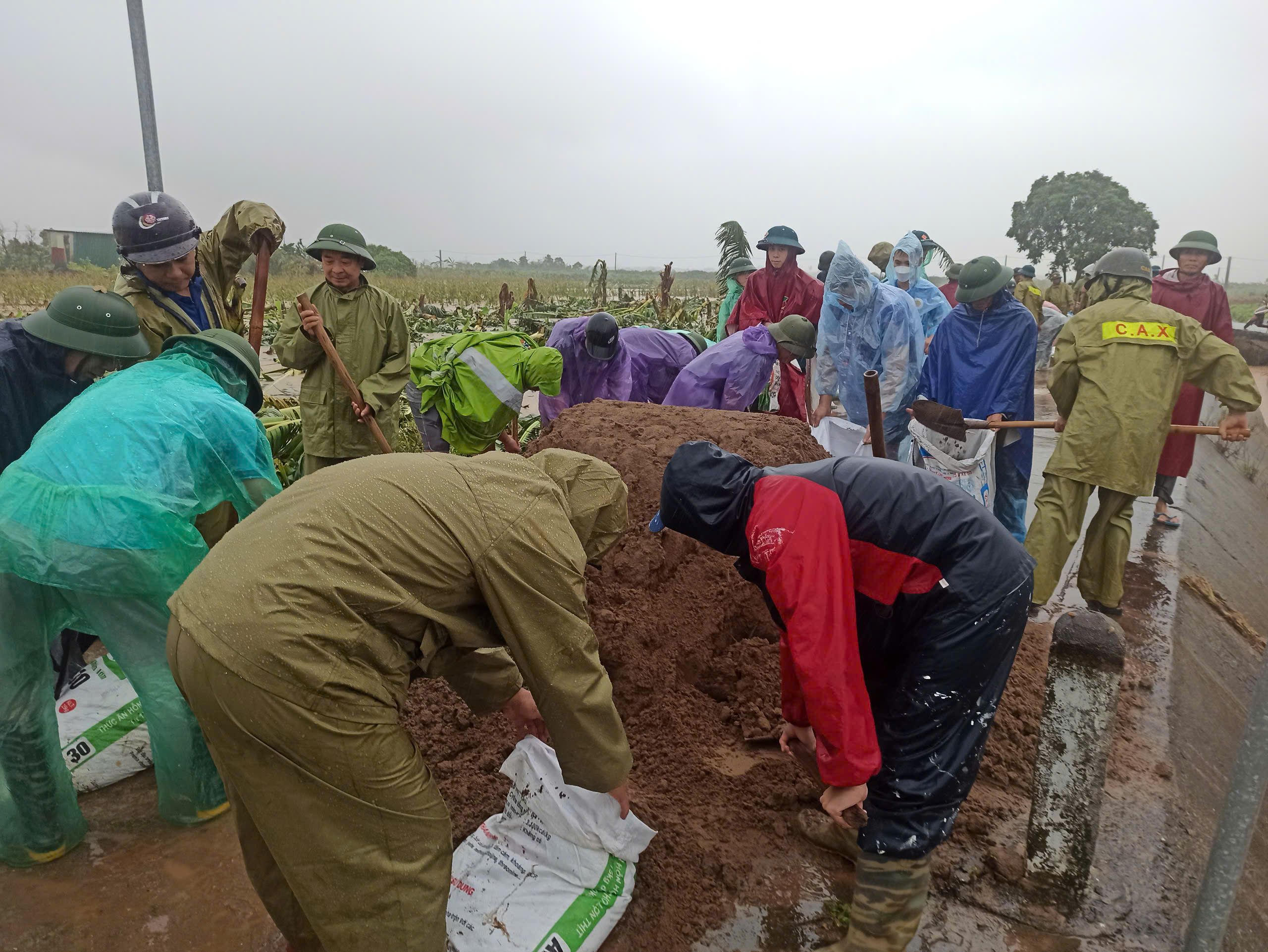 Lực lượng công an, quân sự cùng người dân chủ động gia cố đê |