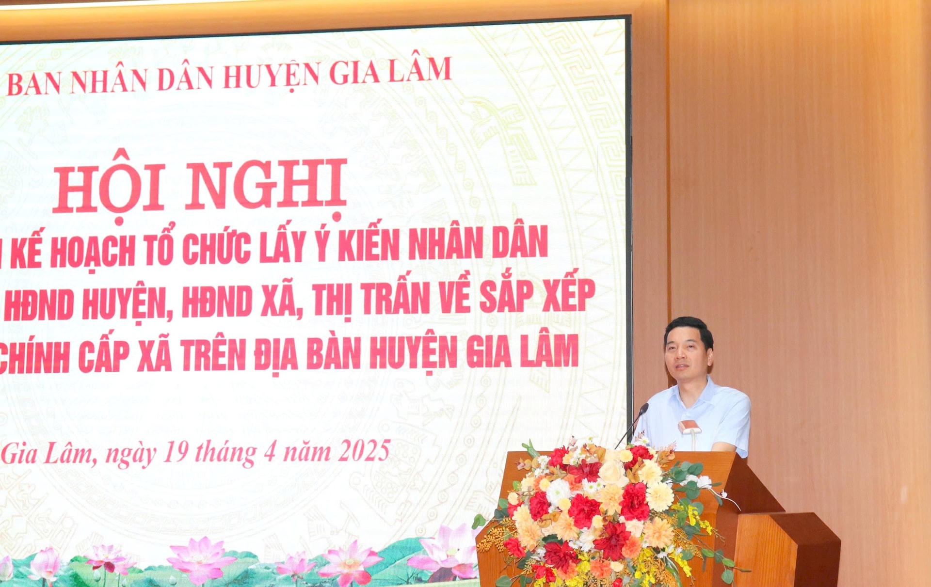 Bí thư Huyện ủy Gia Lâm Nguyễn Việt Hà cho biết, thực hiện chỉ đạo của trung ương, thành phố, Huyện ủy đã ban hành Quyết định số 3935-QĐ/HU ngày 18/4/2025 thành lập Ban chỉ đạo triển khai thực hiện việc sát nhập, tổ chức lại đơn vị hành chính cấp xã gồm 20 thành viên; ban hành Kế hoạch số 01-KH/BCĐ về việc triển khai thực hiện việc sáp nhập, tổ chức lại đơn vị hành chính cấp xã trên địa bàn huyện.