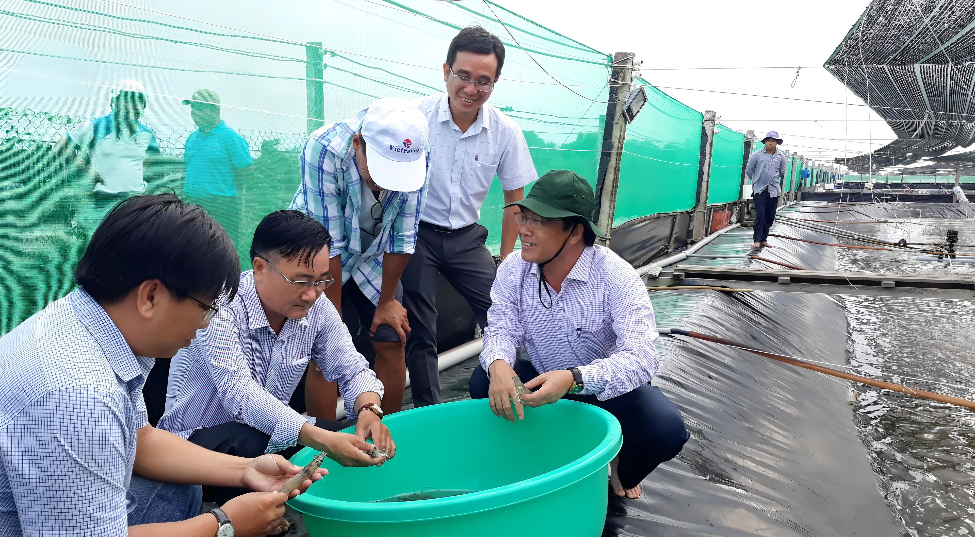 “UBND huyện cũng đã chỉ đạo các cơ quan chuyên môn đẩy mạnh việc hướng dẫn, tập huấn cho người nuôi tôm ứng dụng những tiến bộ của khoa học kỹ thuật vào sản xuất, kết hợp với xây dựng và triển khai mô hình điểm. Đặc biệt, nhiều mô hình tiến bộ theo hướng nâng cao năng suất, chất lượng con tôm, giảm ô nhiễm môi trường được áp dụng vào sản xuất như: nuôi tôm siêu thâm canh ứng dụng công nghệ cao tuần hoàn nước khép kín, nuôi tôm hai giai đoạn áp dụng công nghệ sinh học, Biofloc…
