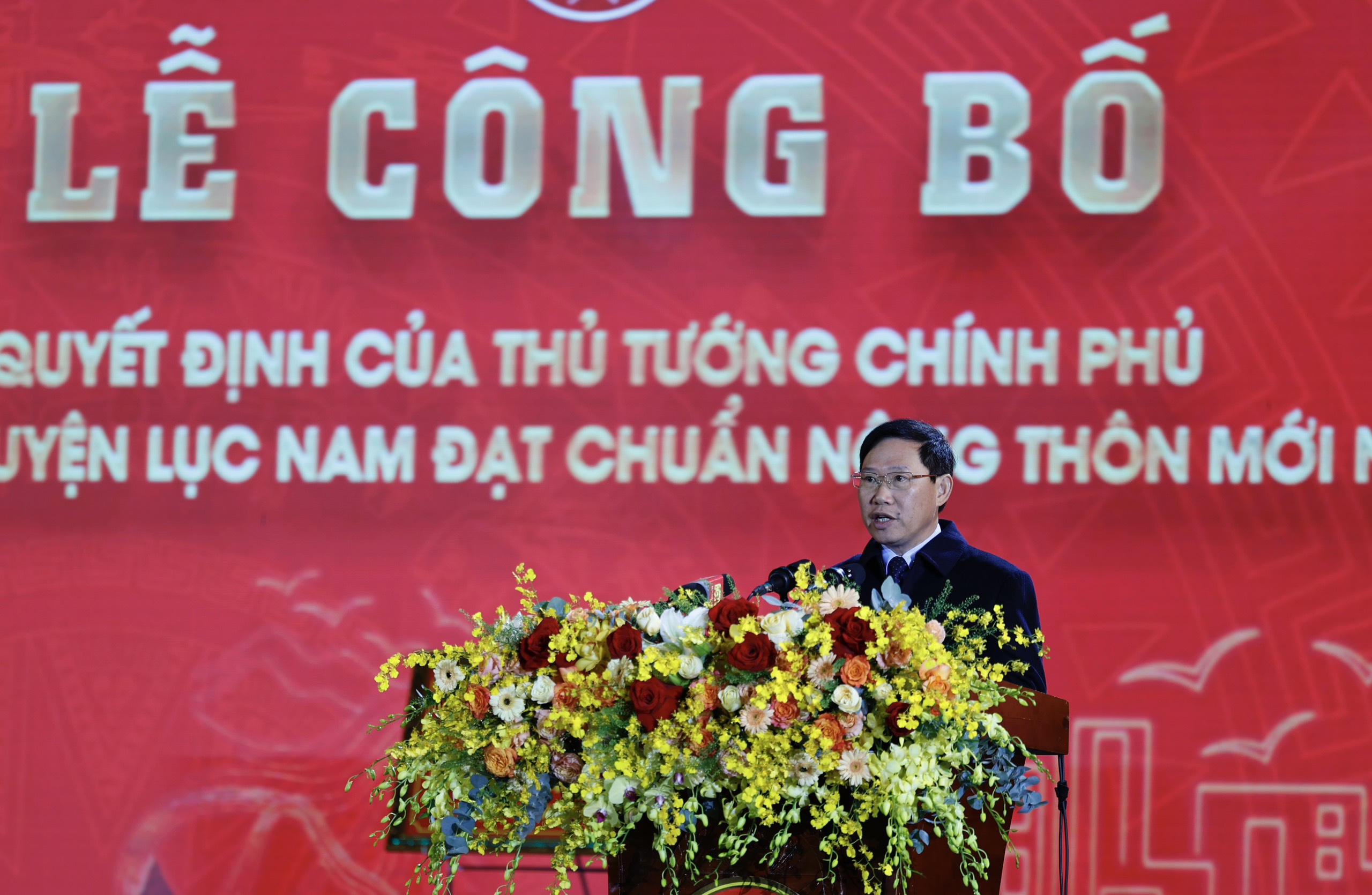 Tại buổi lễ, Chủ tịch UBND tỉnh Bắc Giang Lê Ánh Dương khẳng định, đây là sự kiện có ý nghĩa hết sức quan trọng, là niềm vui, niềm vinh dự, tự hào của tỉnh Bắc Giang nói chung, của Đảng bộ, chính quyền và Nhân dân các dân tộc huyện Lục Nam nói riêng. Lục Nam là huyện miền núi đầu tiên của tỉnh được công nhận đạt chuẩn nông thôn mới và cũng là huyện đầu tiên của tỉnh đạt chuẩn nông thôn mới theo bộ tiêu chí quốc gia về huyện nông thôn mới giai đoạn 2021 - 2025.