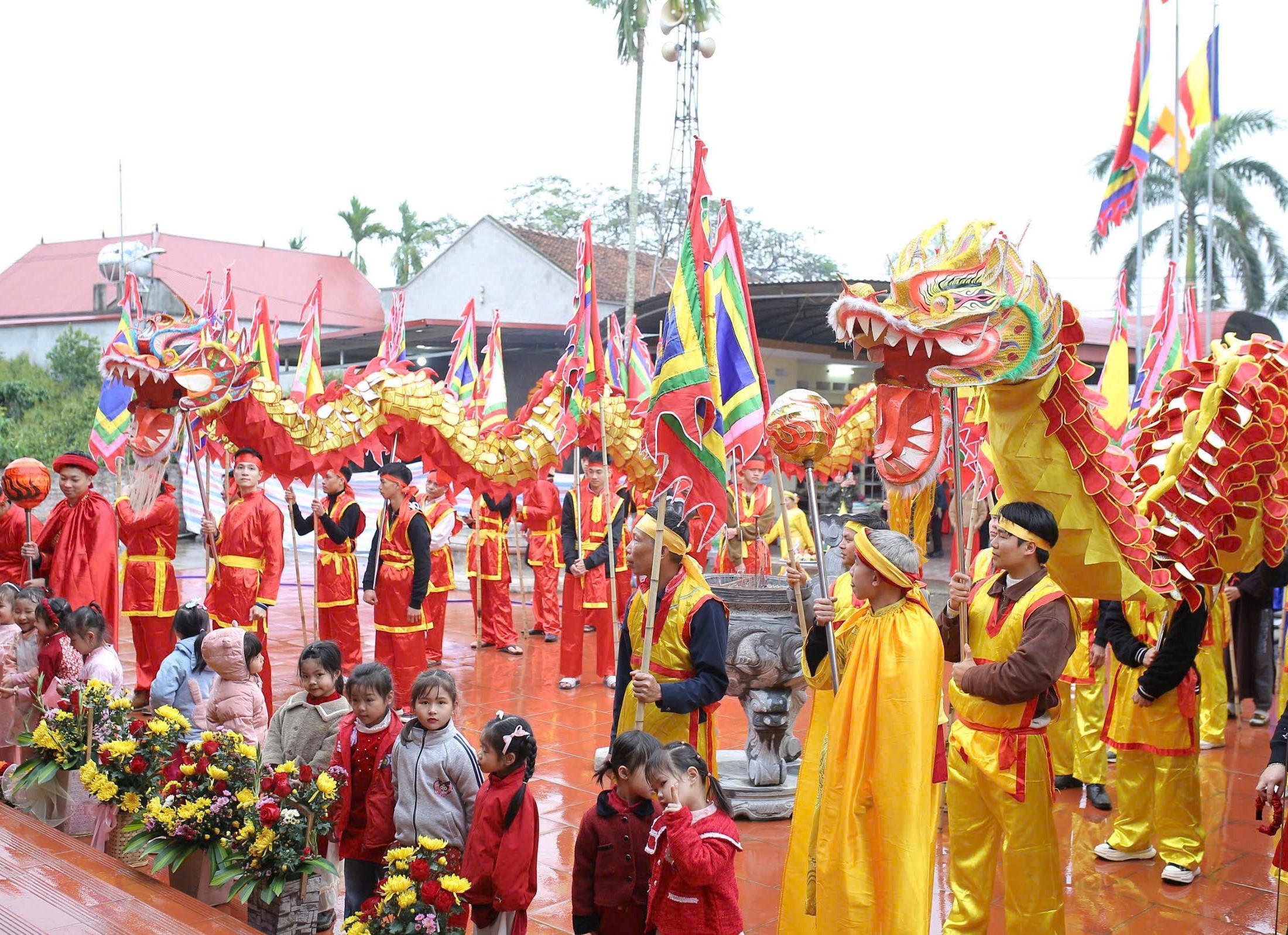 Lễ rước rồng, rước kiệu từ đền Trình về Chùa tại Lễ hội thôn Hòa An. |