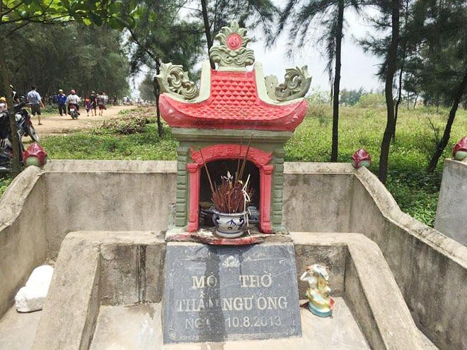 Tại Cửa Hội có một khu vực bà con ngư dân “quy hoạch” thành khu nghĩa trang, cũng những nấm đất với bia mộ và hương khói mỗi năm... Nhưng đó không phải là nghĩa trang dành cho người, mà là khu nghĩa trang dành cho cá voi ở làng Hiếu.