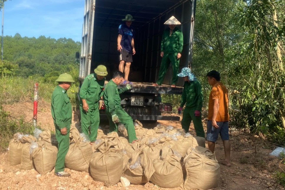 5 tấn đất thật từ Ngã ba Đồng lộc được chuyển lên sân khấu nhằm mang đến trải nghiệm có thật cho diễn viên và khán giả xem vở diễn Huyền thoại tuổi thanh xuân. (Ảnh BTC) |