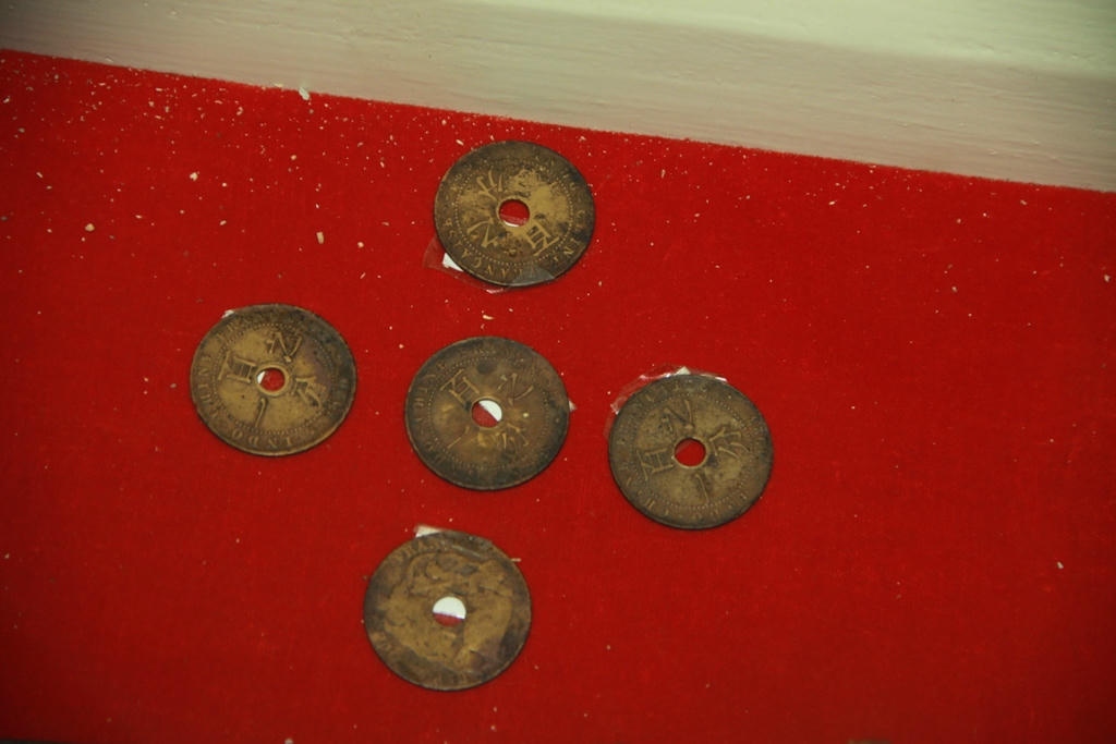 Đồng xu được đưa vào tai bên phải và được thổi lên, sau đó được cột vào một sợi dây và đeo vào cổ tay bên phải người góp xu. Đây là đồng xu đã được làm phép, nó linh thiêng tránh được bệnh tật, đồng thời cũng chứng thực được người này tham gia phong trào. Đối với phụ nữ có thai chỉ cần 3 xu, trẻ em chỉ cần 2 xu, tất cả việc góp xu đều theo một nghi lễ nhất định.