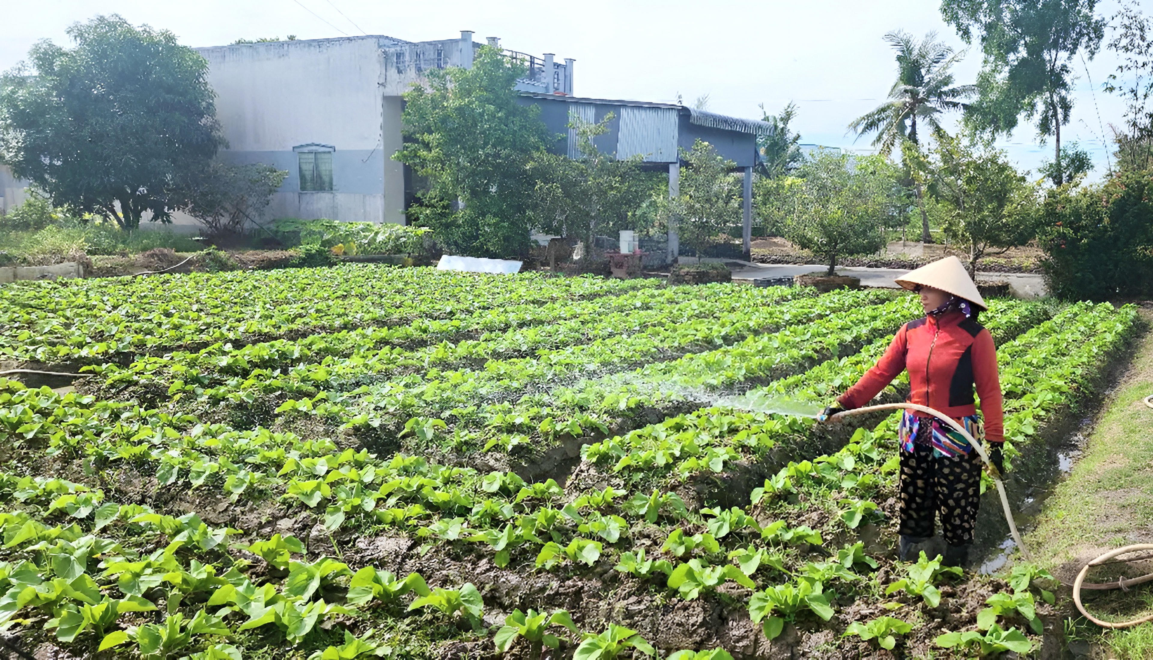 Bà con nông dân trên địa bàn huyện U Minh tích cực phát triển vụ hoa màu Tết (mô hình trồng cải tùa xại của bà Đặng Thị Vẹn, ấp 13 xã Khánh Thuận). |
