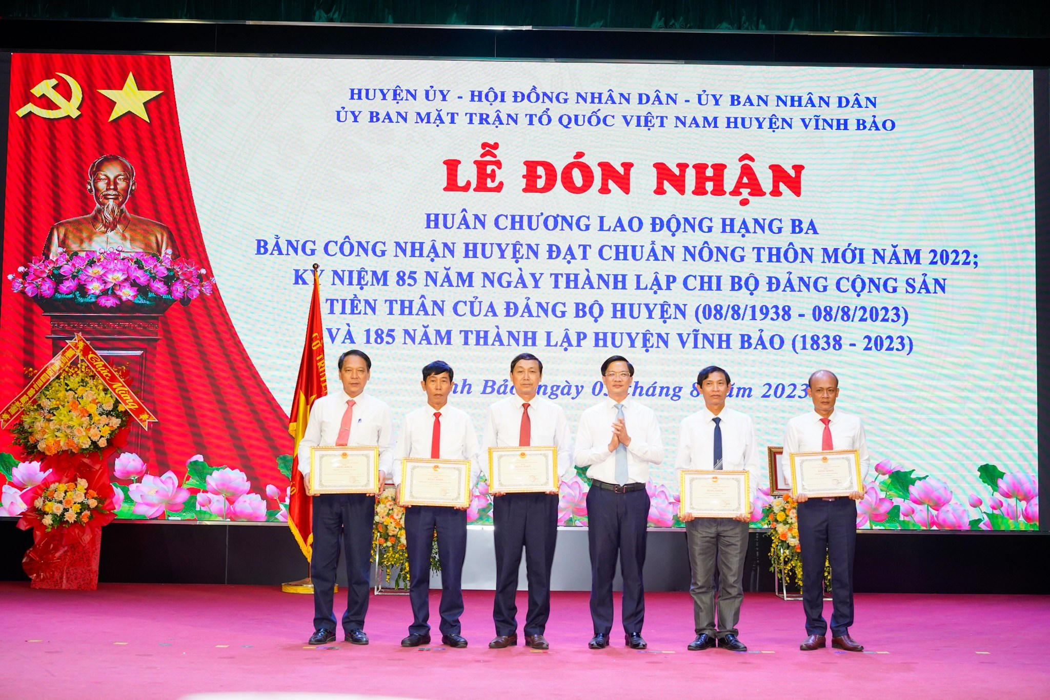 Tại Lễ kỷ niệm, Bí thư Thành ủy Hải Phòng Lê Tiến Châu đã trao Huân chương Lao động Hạng Ba của Chủ tịch nước tặng Đảng bộ, chính quyền và Nhân dân huyện Vĩnh Bảo.