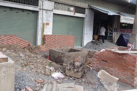 Hiện nay, hai bên vỉa hè của đường được xây một dải tường gạch cao từ 0,7 đến 1,2m chắn ngang trước mặt tiền nhà dân theo cao độ của lề đường dự kiến. Mọi việc mua bán kinh doanh của hàng trăm hộ dân hai bên đường hoàn toàn bị đình trệ. Ngay cả điều kiện sinh sống bình thường của người dân cũng hết sức khó khăn. Từ nhà mở cửa bước ra đường phải vượt qua rào chắn cao, người đi lại đã khó, muốn đưa xe máy vào nhà càng khó, phải nhiều người hợp sức khênh xe qua ải.