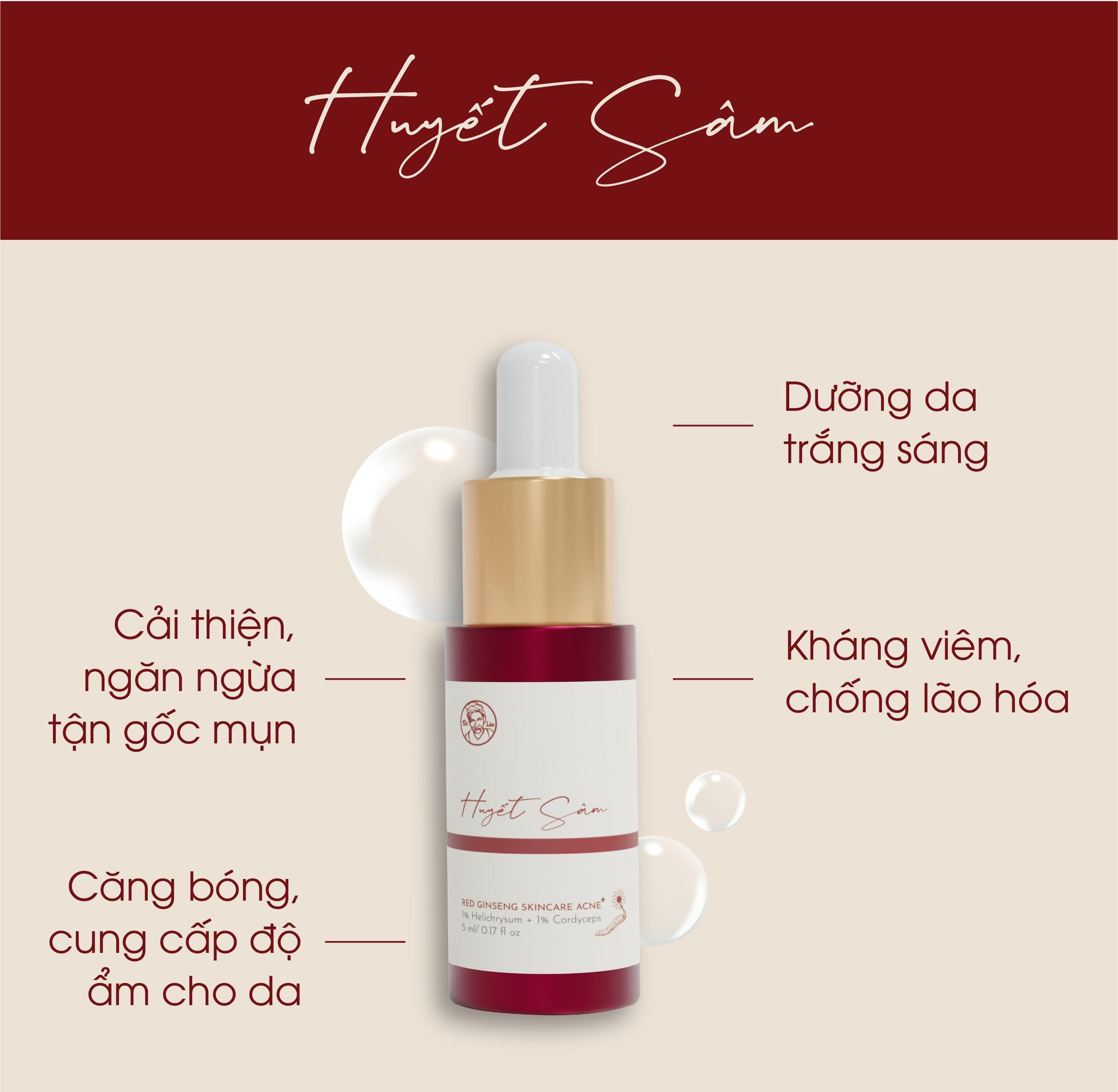 Bà Lão Huyết Sâm – Red Ginseng Skin Care Acne (phiên bản tiêu chuẩn) có công dụng làm trắng da, ngừa mụn, giúp phục hồi da, mờ thâm mờ sẹo, mờ tàn nhang, đồi mồi, chống nhăn da, mịn da.