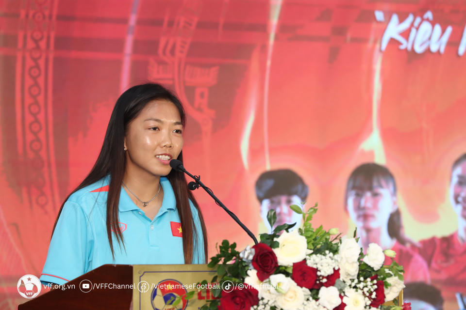 Tôi xin cảm ơn các thế hệ cầu thủ đi trước, các cô, các chị đã trải qua những lúc khó khăn nhất để hôm nay đưa bóng đá nữ VIệt Nam góp mặt tại giải đấu bóng đá nữ lớn nhất hành tinh. Chặng đường nào cũng đầy gian nan, nhưng bóng đá nữ luôn nhận được sự quan tâm của các cấp lãnh đạo và người hâm mộ. Toàn đội xin hứa sẽ cố gắng, quyết tâm, nỗ lực cùng nhau mang về những điều tuyệt vời nhất cho người hâm mộ”.