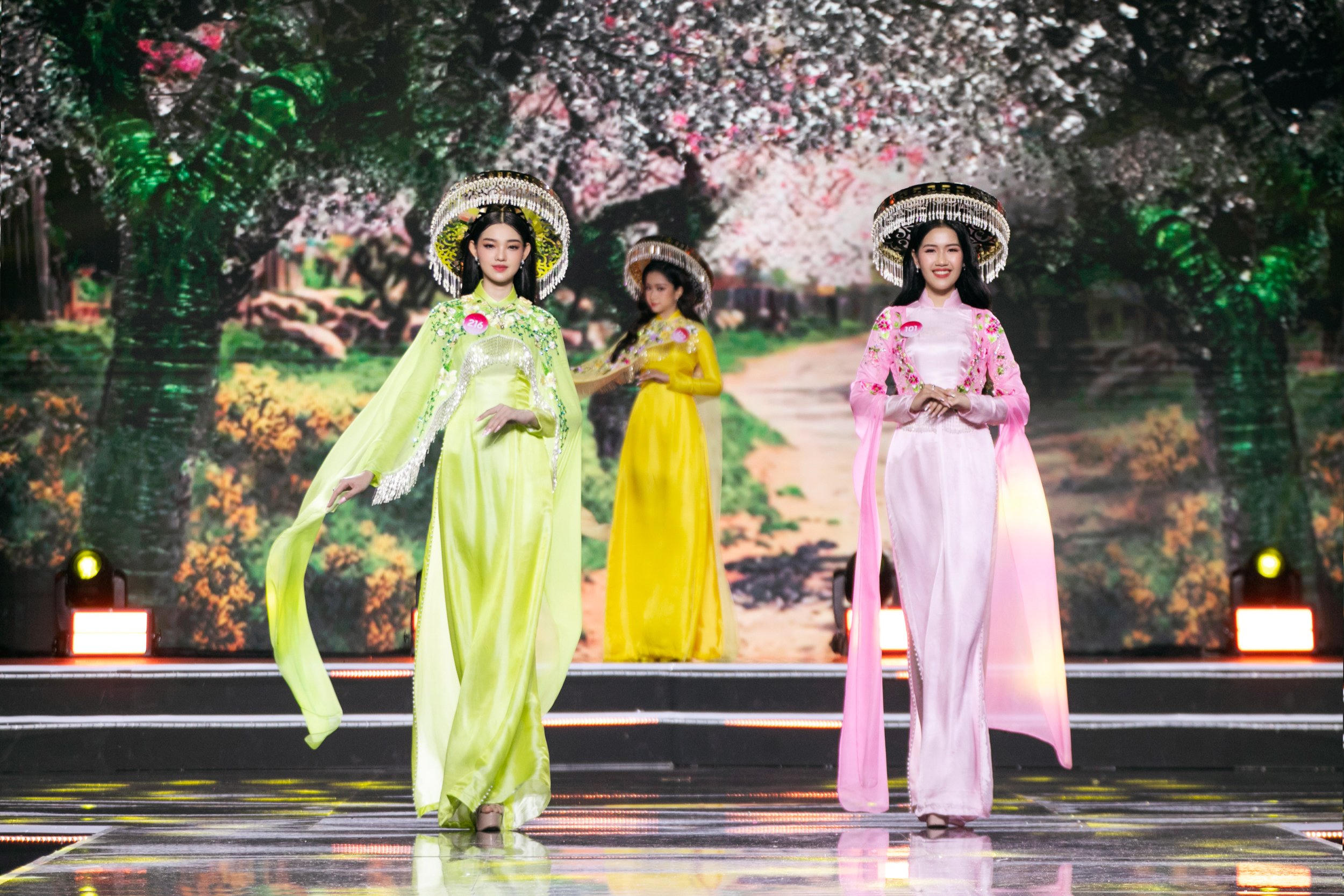 Sau đó, thí sinh Hoa hậu Việt Nam được chia thành từng nhóm và catwalk đôi với tà áo dài của các bộ sưu tập Bức họa đồng quê (nhà thiết kế Bảo Bảo), Thoáng Tây Bắc (nhà thiết kế Ngô Nhật Huy), Mùa gặt (nhà thiết kế Vũ Việt Hà), Sài Gòn ơi (nhà thiết kế Liên Hương), Việt Nam tôi (nhà thiết kế Đinh Văn Thơ).