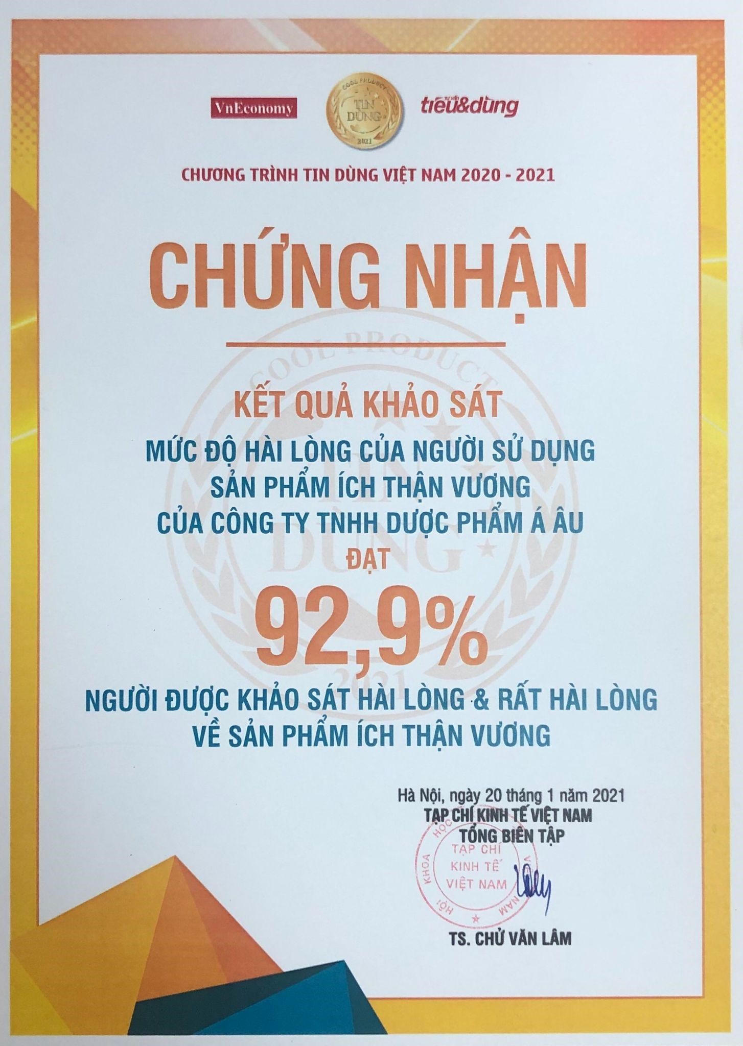Kết quả khảo sát trên người bệnh thận dùng Ích Thận Vương của Tạp chí Kinh tế Việt Nam năm 2021 cho thấy: