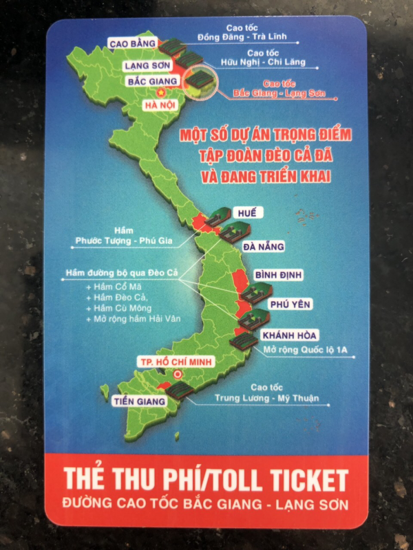Thẻ thu phí đường Cao tốc Bắc Giang-Lạng Sơn in bản đồ Việt Nam có quần đảo Trường Sa, Hoàng Sa nhưng mờ, không rõ nét