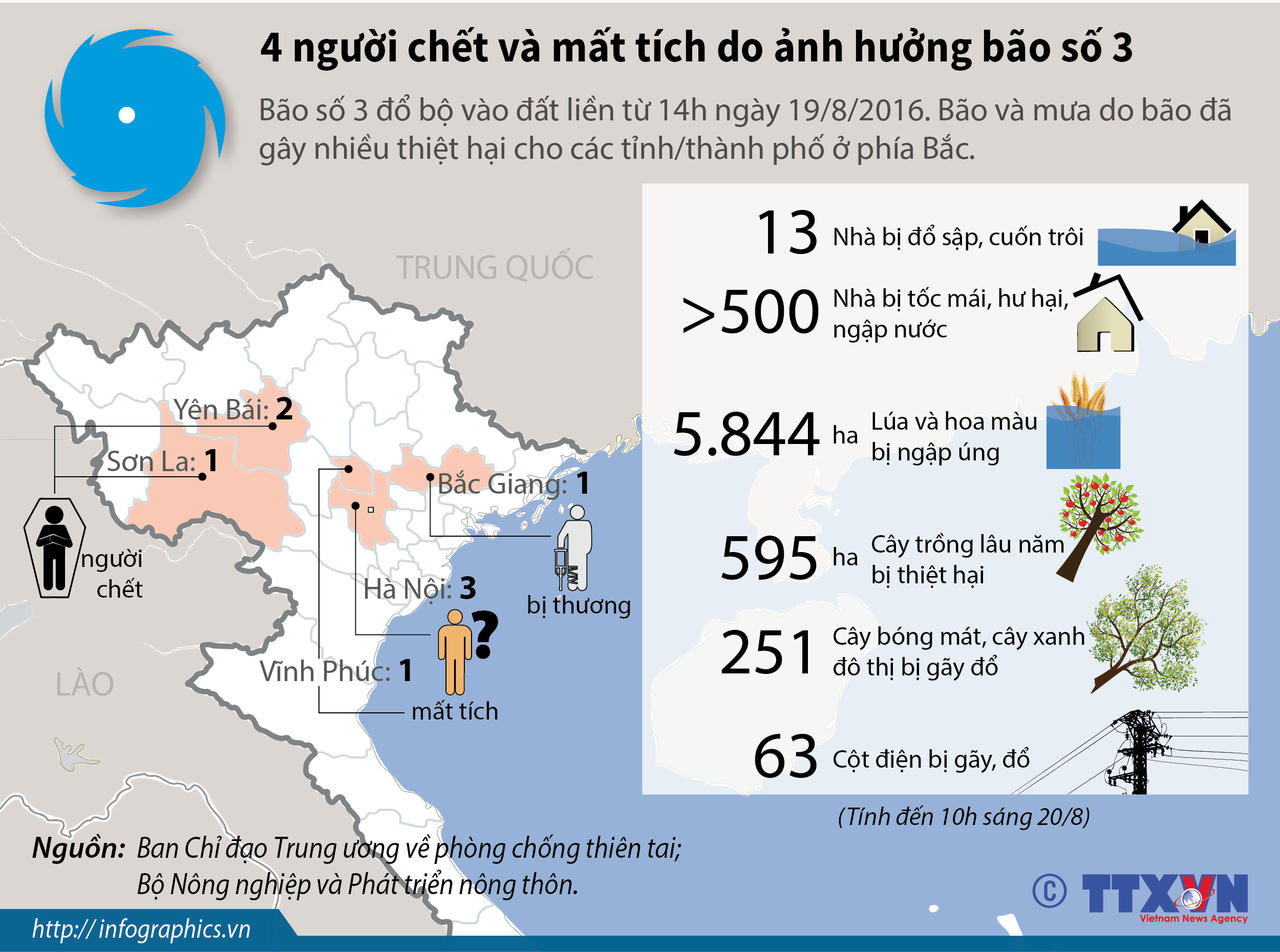 [Infographic] 4 người chết và mất tích do ảnh hưởng bão số 3