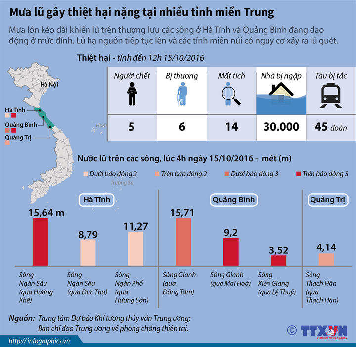 [Infographic] Mưa lũ gây thiệt hại nặng tại nhiều tỉnh miền Trung