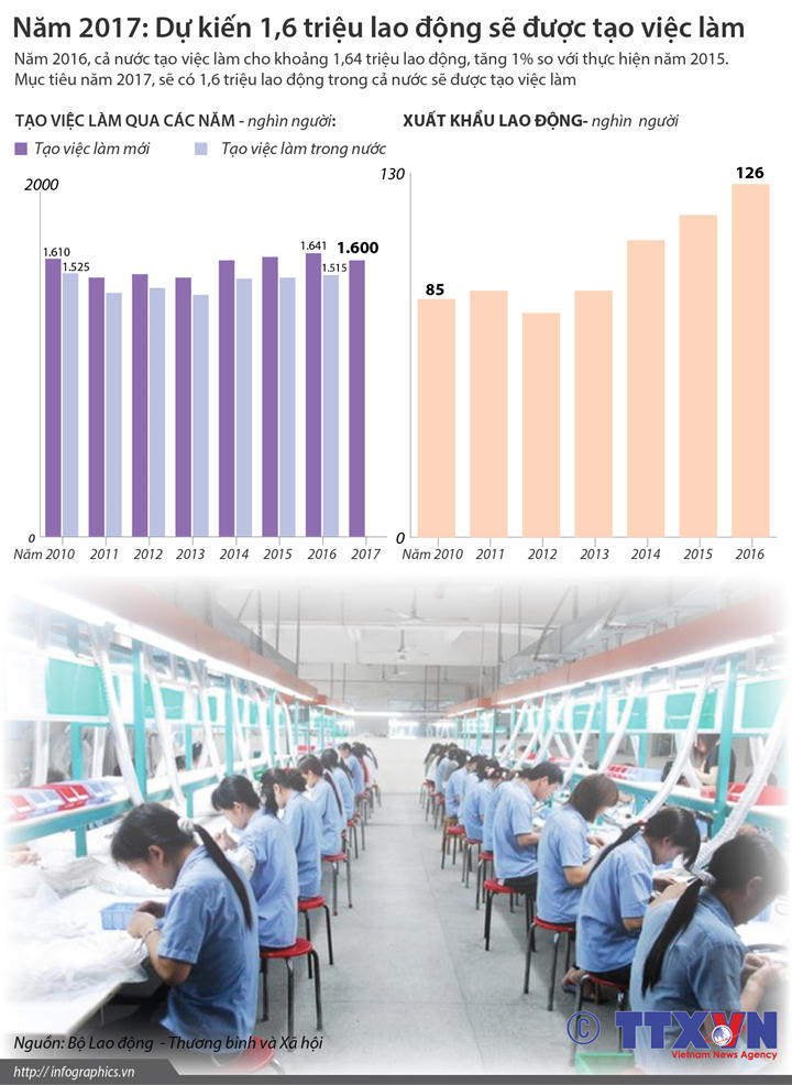 Infographic: Năm 2017: Dự kiến 1,6 triệu lao động sẽ được tạo việc làm