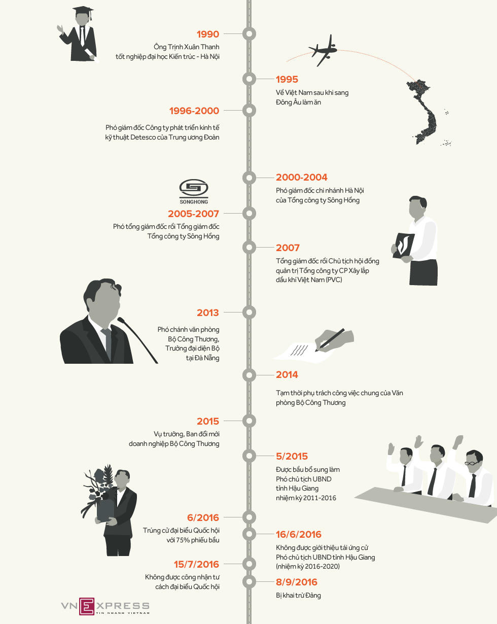 Tốt nghiệp đại học kiến trúc cách đây 26 năm, ông Trịnh Xuân Thanh đã trải qua nhiều vị trí lãnh đạo quan trọng trước khi bị khai trừ Đảng ngày 8/9.