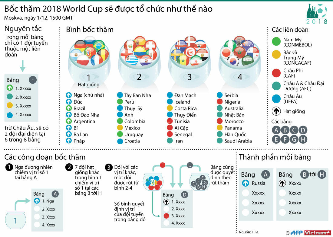 [Infographics] Bốc thăm World Cup 2018 sẽ được tổ chức như thế nào?