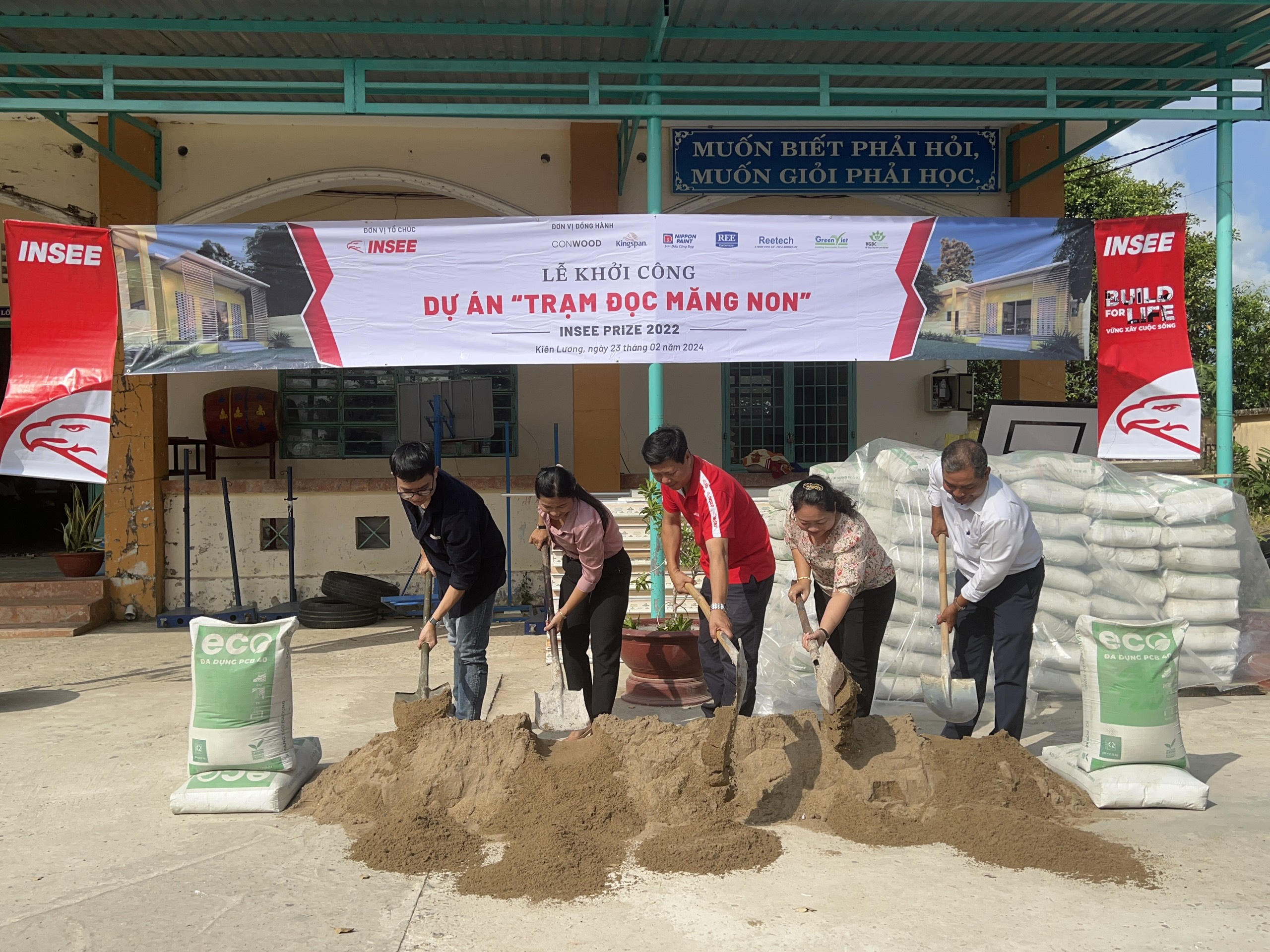 (PLVN) - INSEE Việt Nam mới phối hợp xã Bình Trị (huyện Kiên Lương, tỉnh Kiên Giang) tổ chức Lễ Khởi công dự án Trạm đọc Măng Non tại Trường Tiểu học & THCS Bình Trị. Đây là dự án Quán quân Cuộc thi INSEE Prize 2022 từ nhóm thí sinh Trường Đại học Quốc gia – Đại học Bách Khoa TP HCM.
