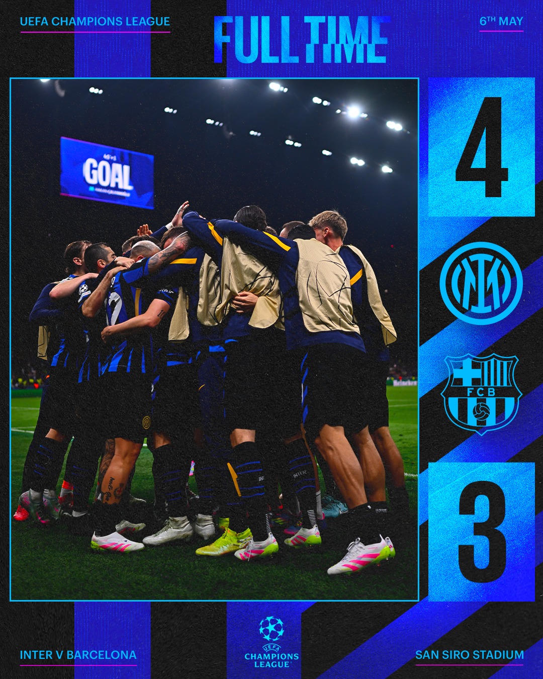 Những phút còn lại, dù Barca rất nỗ lực nhưng cũng không thể ghi được bàn thắng và đành chấp nhận trận thua 3-4 trên sân đối thủ. Inter vào chung kết Champions League với tổng tỷ số thắng 7-6 sau 2 lượt trận.