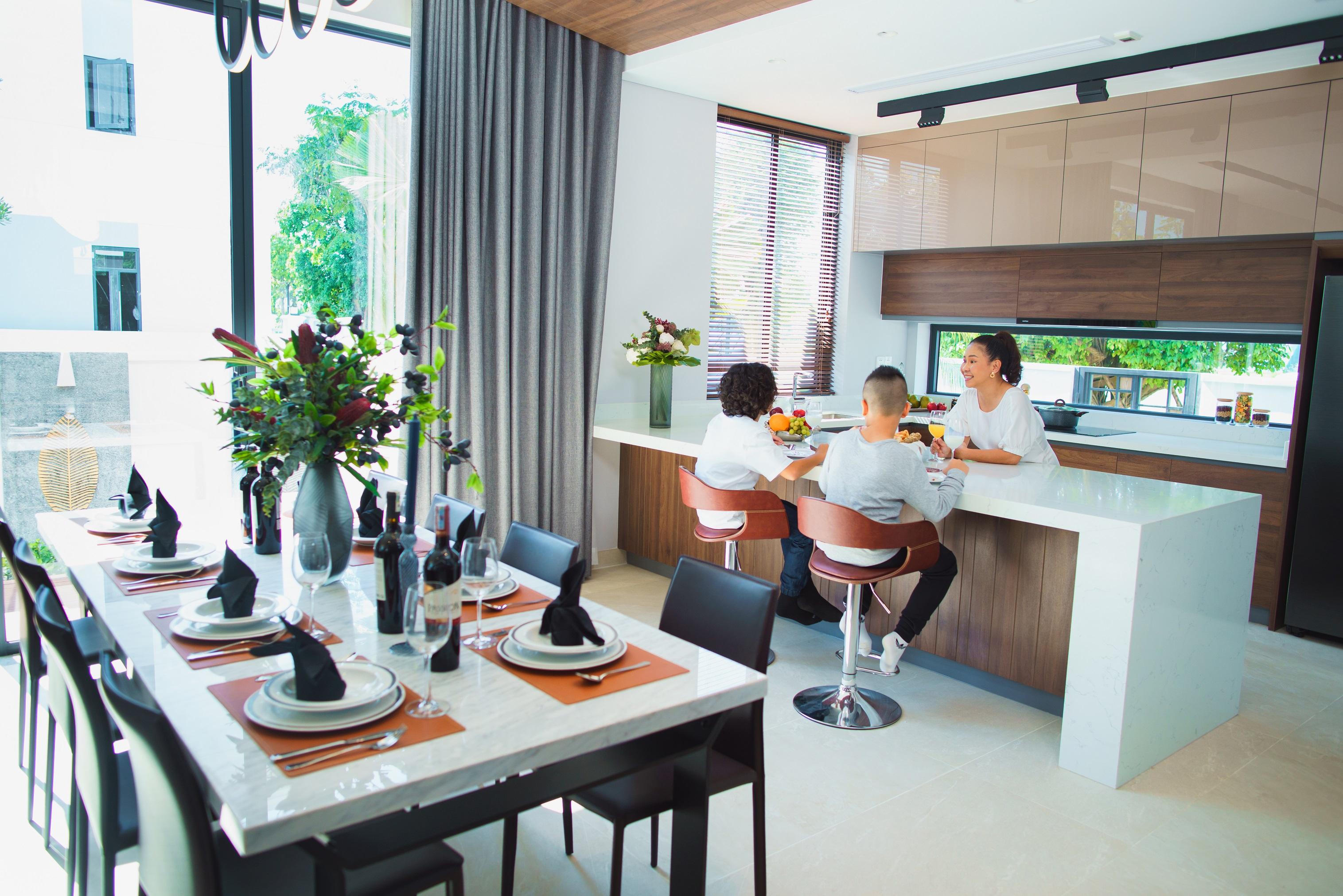 Đầu tư nhà phố tại Aqua City, MC Quang Bảo quan niệm: "Dù độc thân, bạn vẫn phải chăm chút căn nhà của mình thật ấm cúng, có không khí gia đình. Thật thú vị khi được trở về không gian sống có thiết kế tinh tế, ấm áp trong một khu đô thị xanh mát trong... sau một ngày dài làm việc".