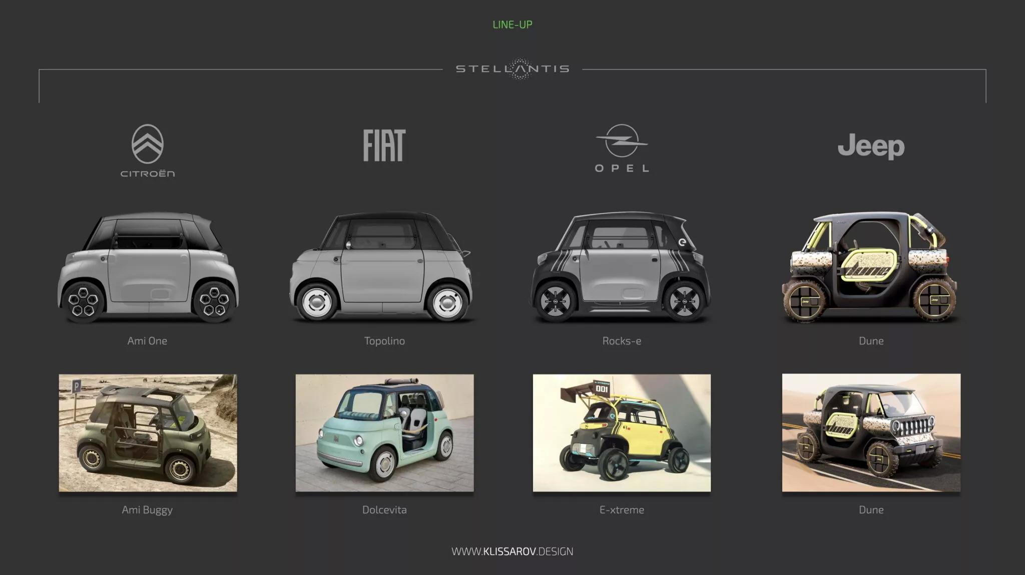 Jeep Dune tuy chỉ tồn tại dưới dạng bản vẽ kỹ thuật số, nhưng không giống như các dự án độc lập khác, nó được lấy cảm hứng từ những mẫu xe có thật. Cụ thể, Dune được hình dung như phiên bản Jeep của bộ ba Citroen Ami, Opel Rocks Electric và Fiat Topolino, vẫn giữ nguyên phân loại L6e nhưng sở hữu thiết kế ngoại thất hoàn toàn mới.