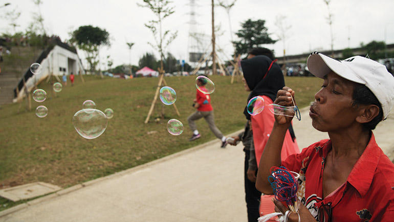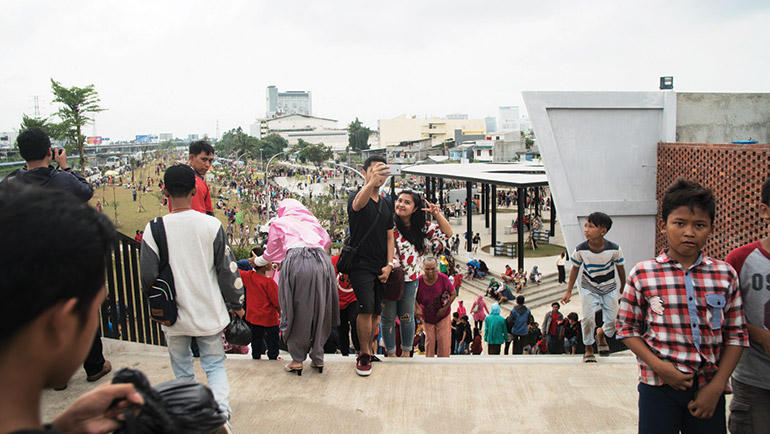 | Mở cửa vào cuối tháng 2/2017, nhiều người Jakarta đã sung sướng khi tận hưởng diện mạo mới của công viên Kalijodo. |