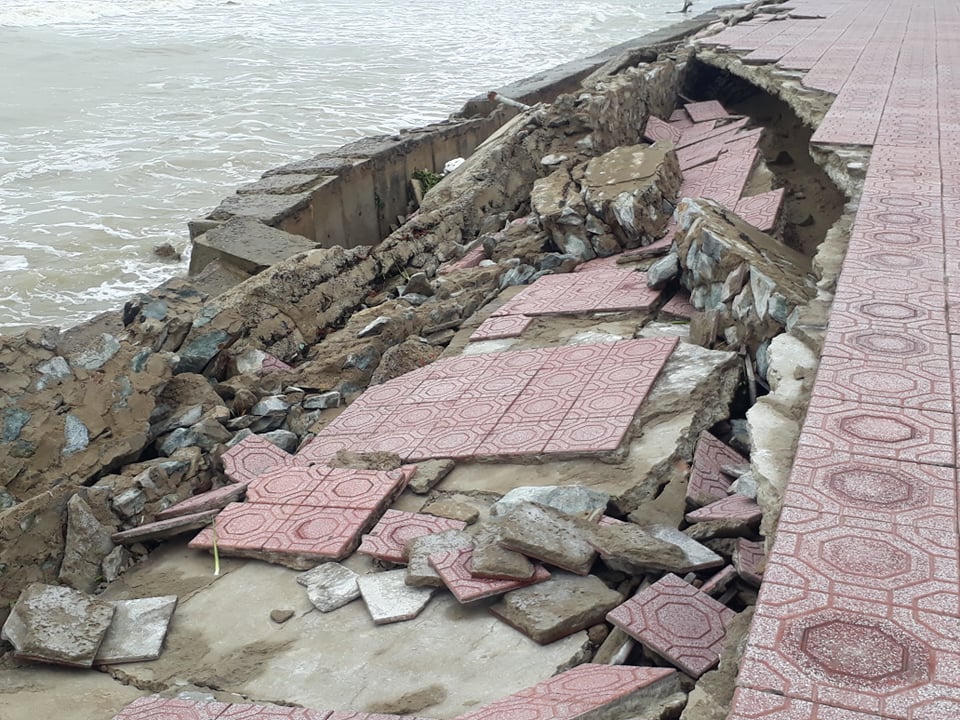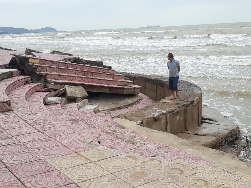 Khi ảnh hưởng của cơn bão số 7 chưa được khắc phục thì ảnh hưởng hoàn lưu của cơn bão số 9 lại khiến tình trạng thêm nặng nề. Trong đó, kè trọng lực bị sập, xâm thực vào bờ dài khoảng 200m; kè xây đá bị sạt lở, đường dạo bộ bị hư hỏng nặng khoảng 500m. Thậm chí, đoạn quảng trường Bình Minh cũng bị hư hỏng thêm với bê-tông đường kè, chân kè bị sập khoảng 300m ở phía nam quảng trường.