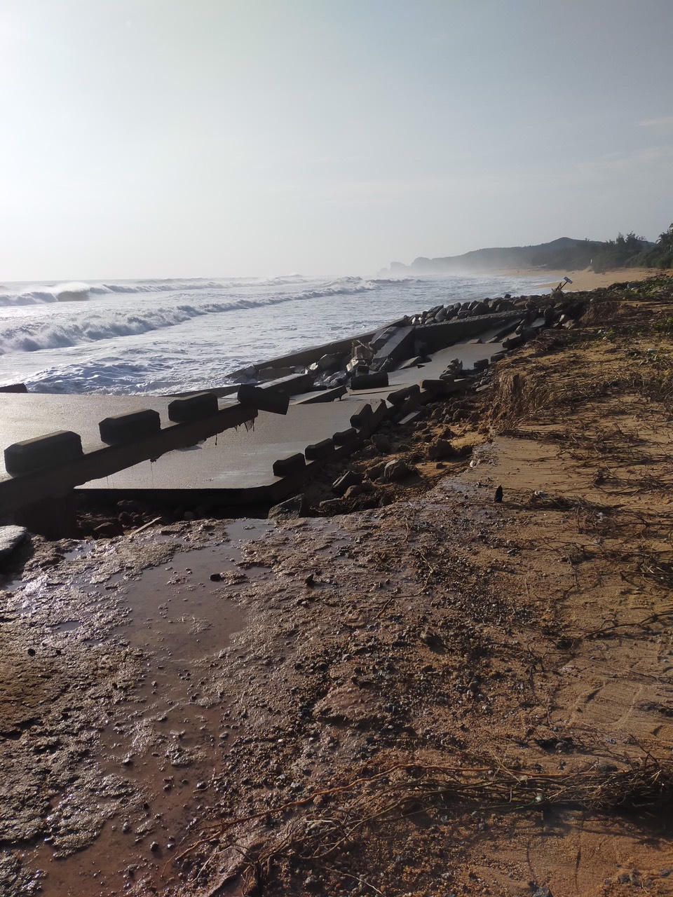 Kè biển tan nát vì triều cường. |