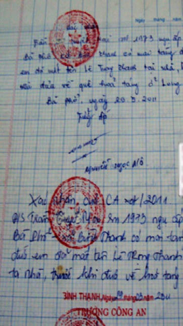 Bà Mai đã làm tờ đơn gửi trưởng ấp với nội dung: Ngày 26/2/2011, bà có đứa em là Lê Trọng Thanh ngụ TP.Long Xuyên (An Giang) mất tại nhà bà Mai ở số 359/5 ở ấp Bà Phổ, xã Bình Thạnh, huyện Thủ Thừa, Long An; được gia đình đưa về quê hỏa táng vào lúc 14h 30 ngày 27/2/2011 tại Ban Công trình đô thị Long Xuyên.