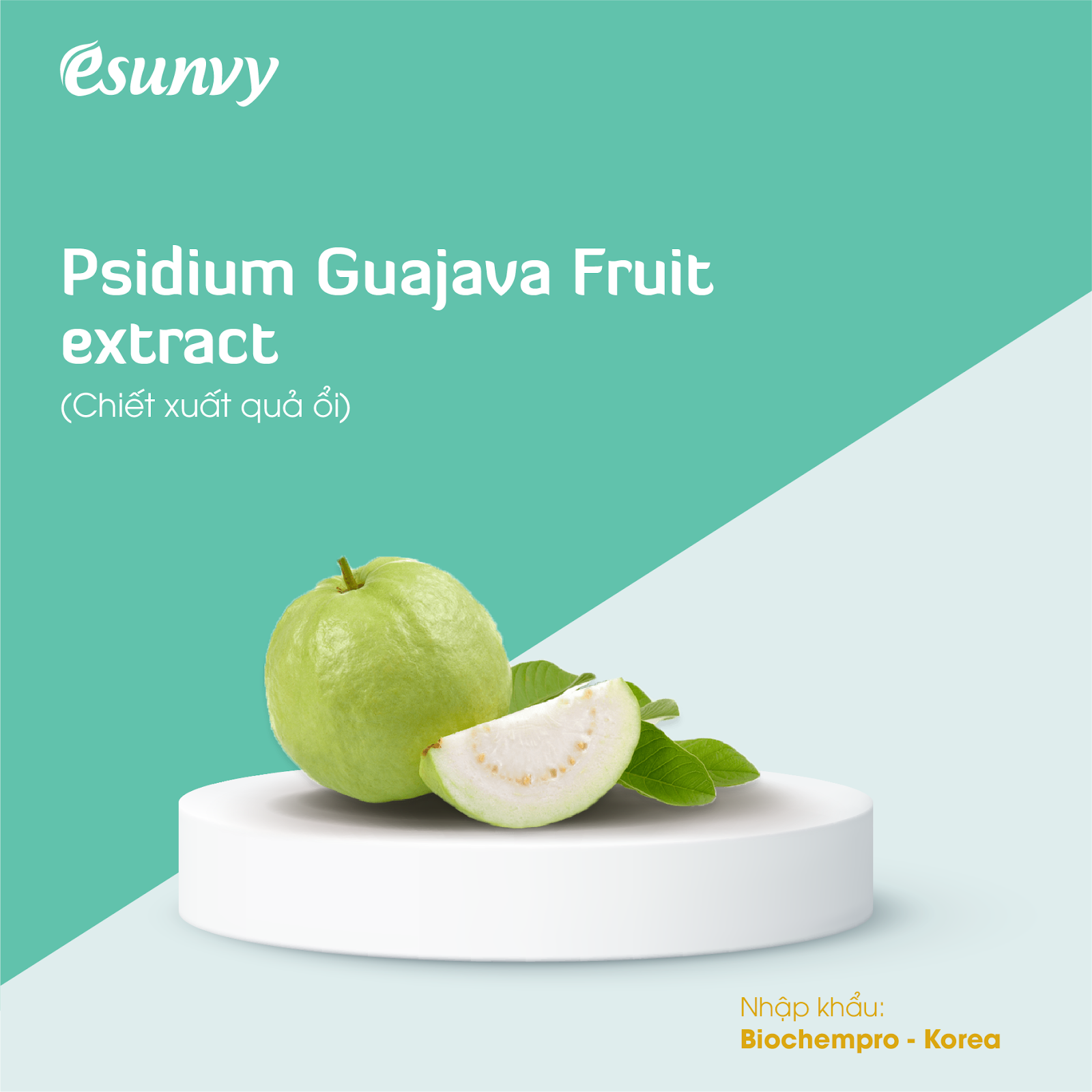 Psidium Guajava Fruit extract (chiết xuất quả ổi): Thành phần làm trắng sáng da hiệu quả, an toàn bằng việc ức chế sinh tổng hợp melanin. Chống oxy hóa mạnh bằng việc vô hiệu hoá các gốc tự do làm hỏng hoặc thay đổi cấu trúc protein của da. Kháng khuẩn chống viêm, làm se da giúp mau lành vết thương.