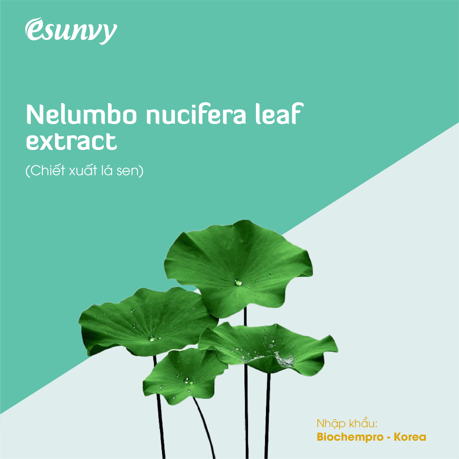 Nelumbo nucifera leaf extract (Chiết xuất lá sen): Làm trắng da, do hàm lượng vitamin C tự nhiên cao, đồng thời ức chế hoạt động của tyrosinase (một enzym tổng hợp hắc sắc tố melanin). Chống viêm tự nhiên giúp nhanh lành vết thương, do giàu hàm lượng kaempferol- một chất flavonoid tự nhiên giúp ngăn ngừa viêm nhiễm, bảo vệ tế bào mô của cơ thể trước tác hại của các gốc tự do. Chống nếp nhăn, không gây kích ứng da