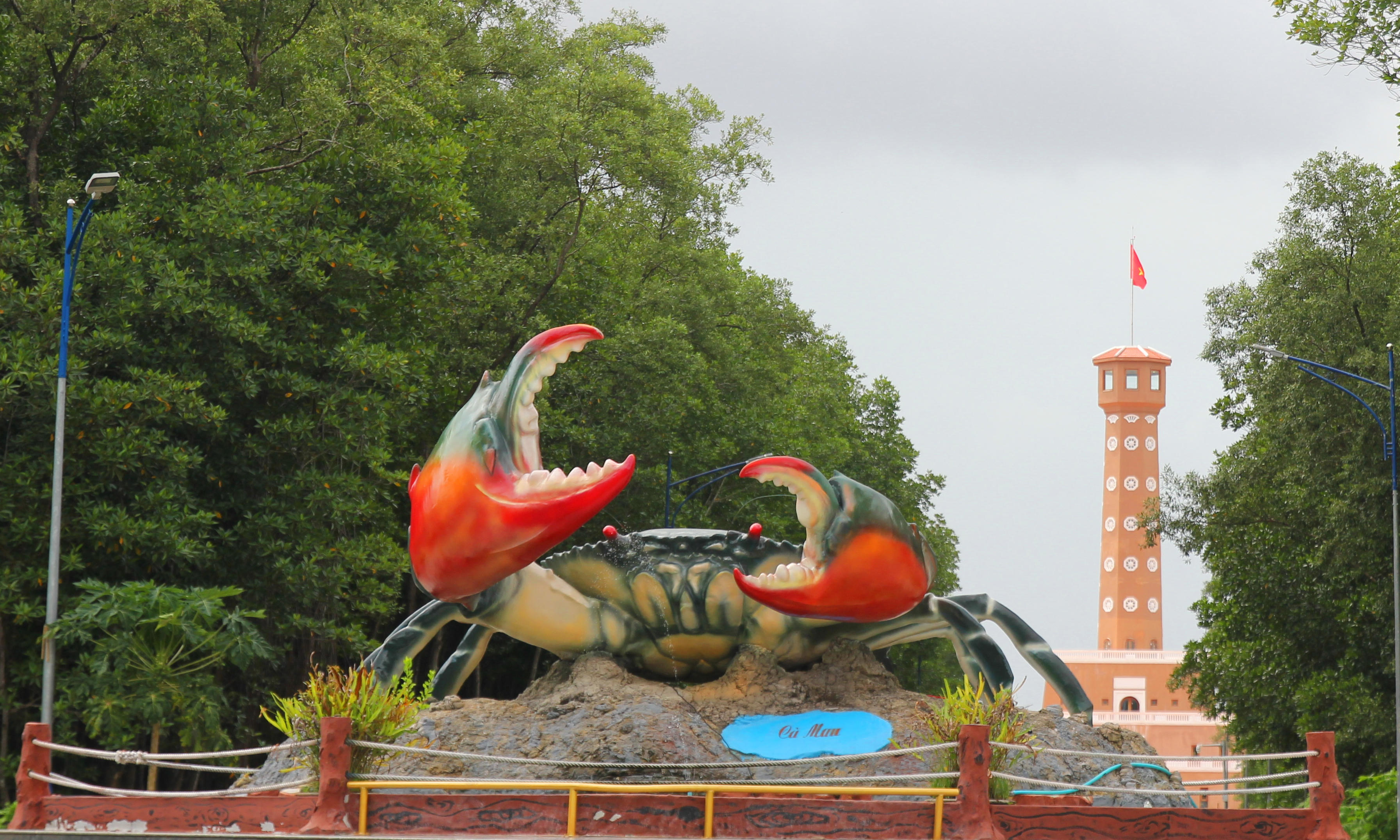 Biểu tượng con Cua tại Khu du lịch Quốc gia Mũi Cà Mau. |