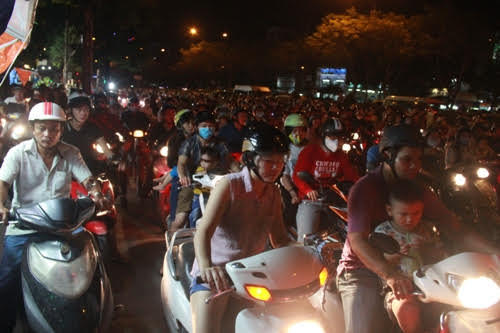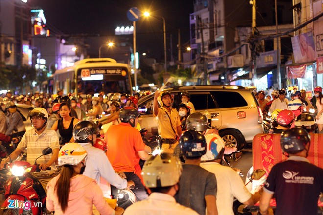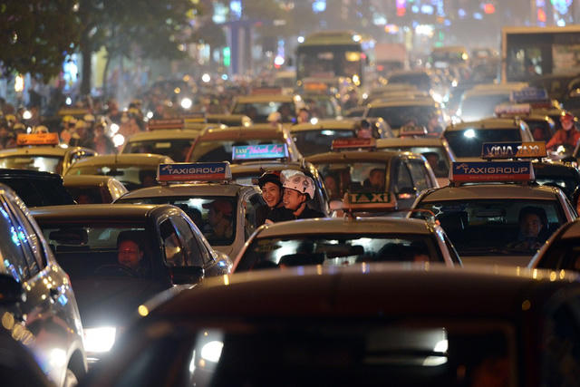 Từ khoảng 17h đến 22h ngày 24/12, dòng người dồn về trung tâm và các nhà thờ lớn Hà Nội, TP HCM để vui chơi, đón Giáng sinh gây nên cảnh ùn tắc cục bộ. Kẹt cứng giữa phố trong đêm nhưng nhiều bạn trẻ vẫn hào hứng hòa mình vào không khí cả năm mới có một lần này...