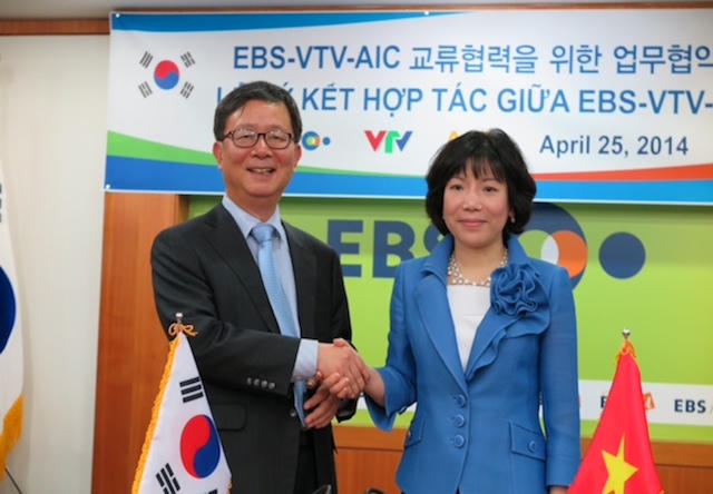 (PLO) - Ngày 25/04/2014, tại Seoul (Hàn Quốc), Đài Truyền hỉnh Việt Nam và Công ty Cổ phần Tiến bộ Quốc tế (AIC) đã ký kết hợp tác với Đài Truyền hình Giáo dục lớn nhất Châu Á – EBS.