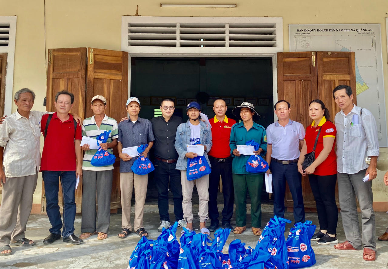 Thôn Mỹ Xá, xã Quảng An (huyện Quảng Điền) bị ngập lụt hơn 20 ngày qua; Đoàn công tác đã chọn địa phương này để phát 100 xuất quà cùng tiền hỗ trợ. Ông Đặng Ngọc Hiếu (Trưởng thôn) bày tỏ, bây giờ mỗi lần nghe đài báo có mưa bão thì cả thôn đều rùng mình. Tài sản còn trộn bùn non, chưa khắc phục xong thì bà con lại sẵn sàng chạy lụt. Ai nấy đều kiệt sức cả rồi.