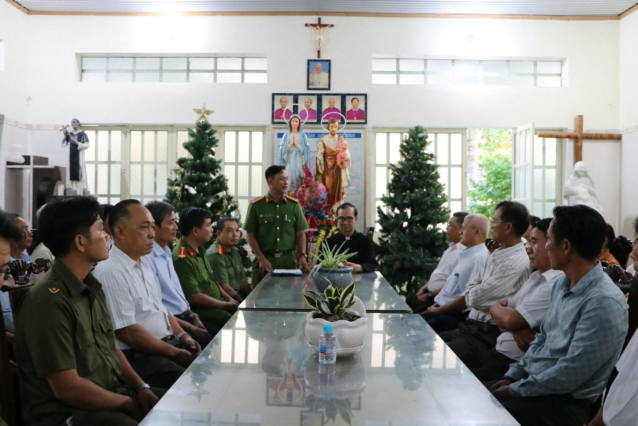 Công an thị trấn và Ban hành giáo Giáo xứ thường xuyên gặp gỡ, trao đổi thông tin. |
