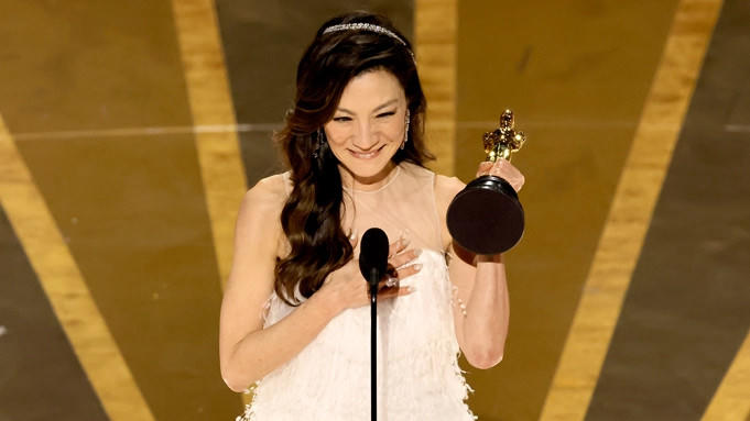 Ngôi sao gốc Á Dương Tử Quỳnh trong khoảnh khắc nhận tượng vàng Oscar. (Ảnh: CNBC) |