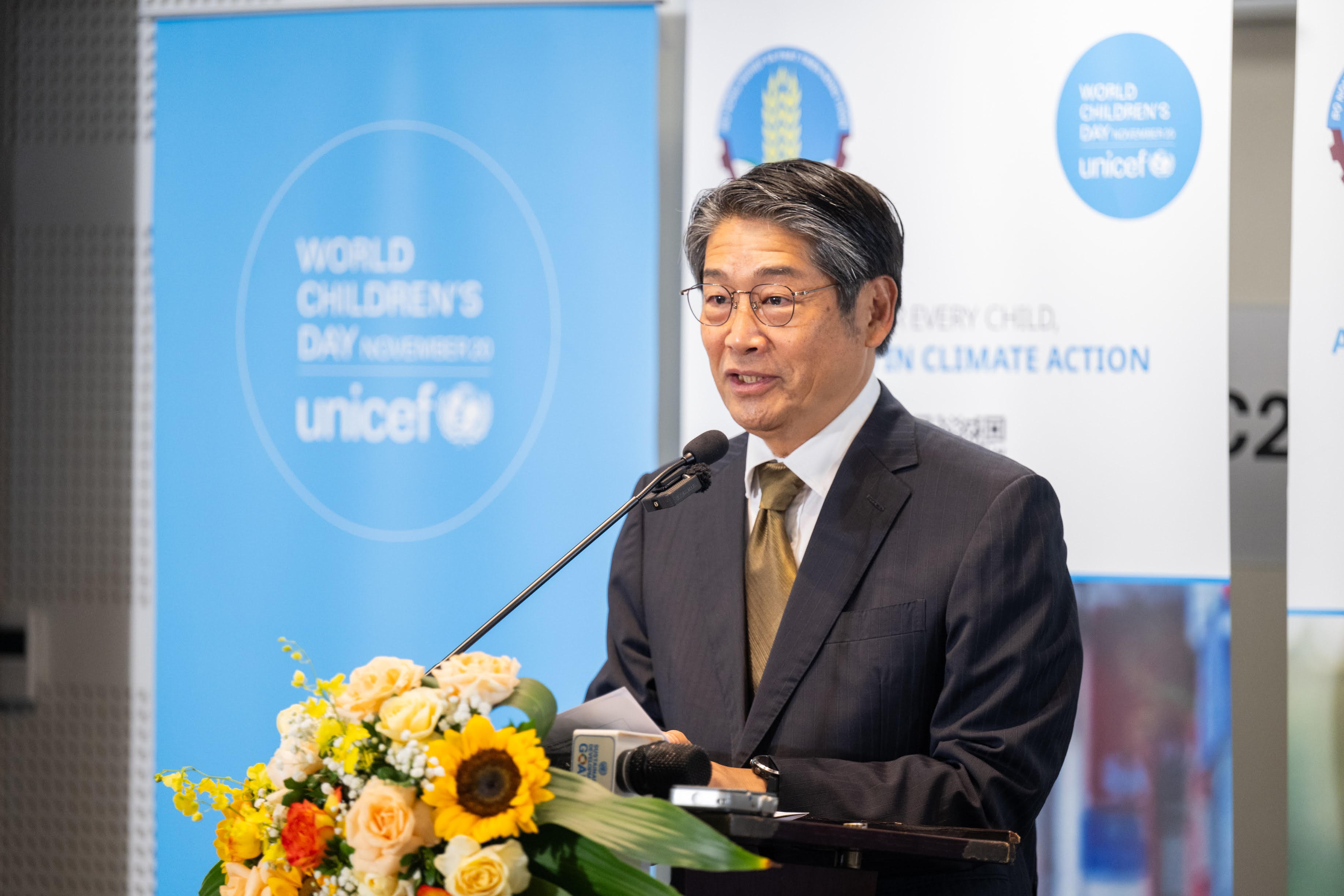 Đại sứ đặc mệnh toàn quyền Nhật Bản tại Việt Nam Ito Naoki nhấn mạnh nỗ lực hợp tác giữa Chính phủ Nhật Bản và Việt Nam trong nhiều sáng kiến quản lý thiên tai. Ông cũng nhấn mạnh sự hỗ trợ đang được thực hiên thông qua UNICEF, tập trung vào trẻ em, là nhóm dễ bị tổn thương trước tác động của thiên tai. “Chính phủ Nhật Bản cam kết tiếp tục đóng góp vào công tác giảm thiểu rủi ro thiên tai cho trẻ em dễ bị tổn thương trong bối cảnh biến đổi khí hậu tại Việt Nam. Các nỗ lực này bao gồm việc nhân rộng các cuộc diễn tập ứng phó thiên tai tập trung vào trẻ em, đồng thời hỗ trợ tái thiết các trường tiểu học và trung tâm sơ tán bị hư hại do cơn bão vừa qua”, Đại sứ Ito Naoki tuyên bố.
