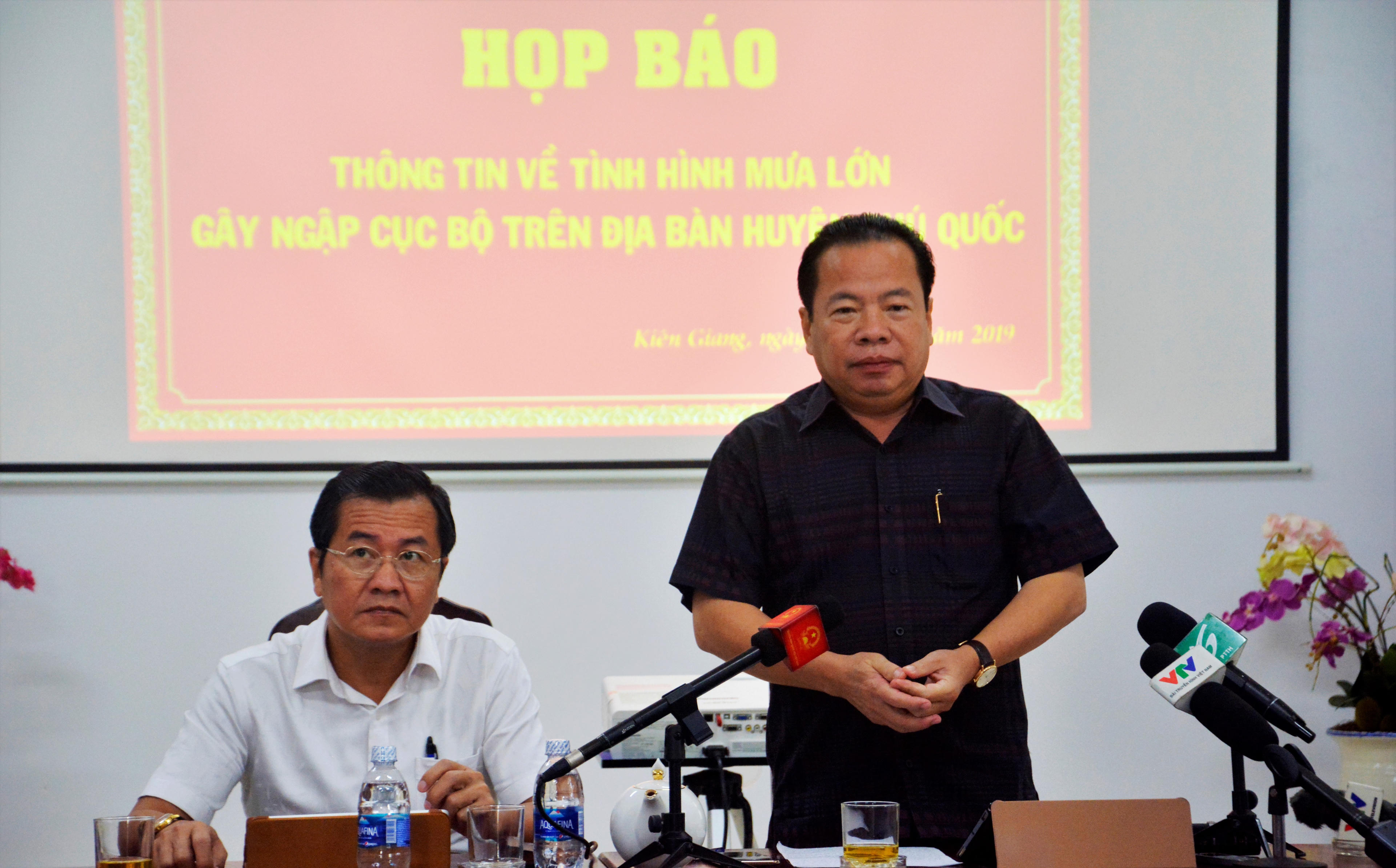 (PLVN) - Đó là nội dung chính tại cuộc họp báo ngày 16/8 do Sở Thông tin truyền thông tỉnh Kiên Giang phối hợp với Ban Tuyên giáo Tỉnh ủy và UBND huyện Phú Quốc tổ chức. Buổi họp báo thông tin tình hình mưa lớn gây ngập cục bộ trên địa bàn huyện Phú Quốc.