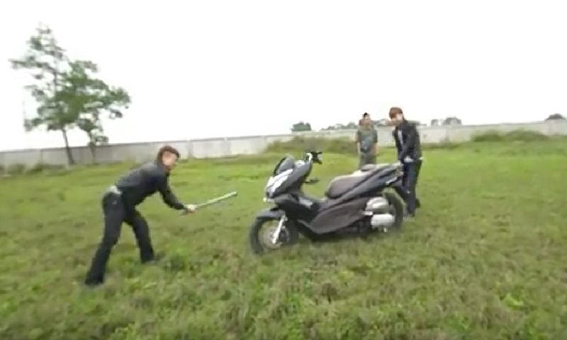 Trong clip, Khá Bảnh cùng một vài thanh niên khác dùng gậy sắt đập nát chiếc xe máy. Nguyên nhân do chiếc xe này tốn xăng. Sau đó, Khá Bảnh cùng nhóm bạn tẩm xăng vào xe rồi châm lửa đốt. Vừa đốt, Khá Bảnh vừa nói: “Đốt luôn không mọi người lại bảo đập xong lại sửa cho mới”.