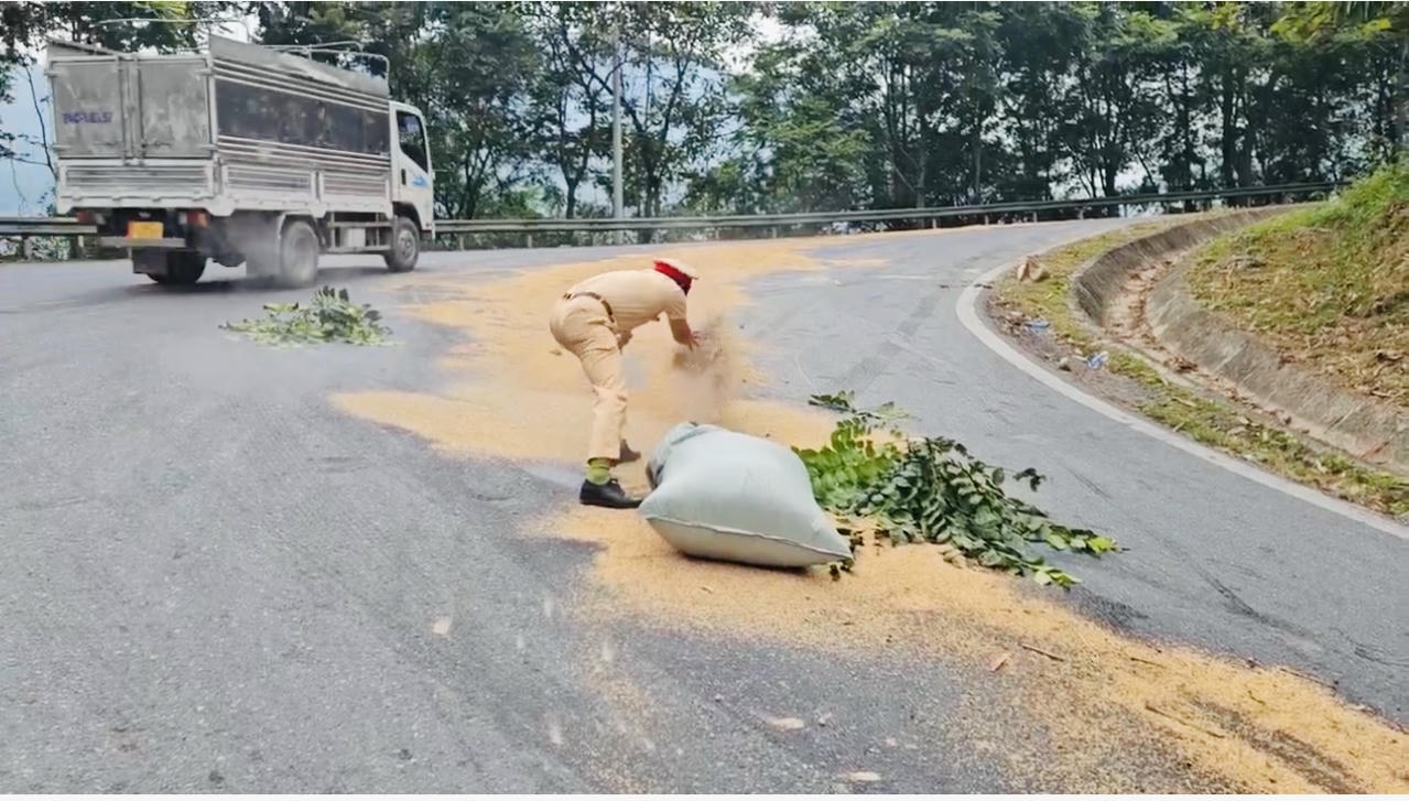 Đội Cảnh sát giao thông số 6, phờng Cảnh sát giao thông đã có mặt kịp thời, điều tiết giao thông, phối hợp với Công ty Cổ phần đường bộ lào Cai tiến hành rải trấu trên các vị trí dầu loang trên mặt đường, đảm bảo không để vết trơn trượt trên mặt đường. Đến khoảng 9h30 cùng ngày, sự cố đường trơn trượt đã được khắc phục hoàn toàn.
