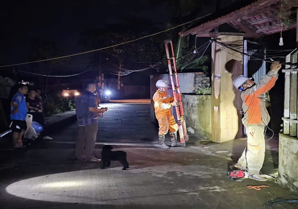 Điện lực Lạng Giang khắc phục sự cố trong đêm. (Ảnh: PC Bắc Giang). |