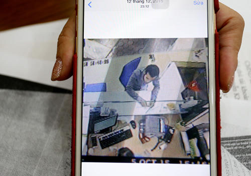 | Bà Trần Thị Thanh Phúc cho xem hình ảnh nam thanh niên đến thực hiện uỷ nhiệm chi 4 tỷ đồng do camera của ngân hàng lưu lại. Ảnh: Bá Đô |