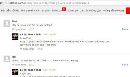 Theo tìm hiểu của PV, trước đó FPT shop đã đưa ra thông tin quảng cáo sai sự thật về thông số màn hình thực tế của sản phẩm máy tính xách tay ASUS GL552VX - XO081D, với màn hình Full HD.