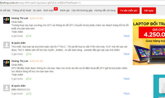 Như Báo Pháp luật Việt Nam đã đưa tin, vừa qua nhiều khách hàng đã lên tiếng "tố" FPT shop quảng cáo một đằng, bán sản phẩm một nẻo, đánh lừa khách hàng khi quảng cáo sản phẩm máy tính xách tay có màn hình Full HD nhưng thực tế chỉ là màn HD.