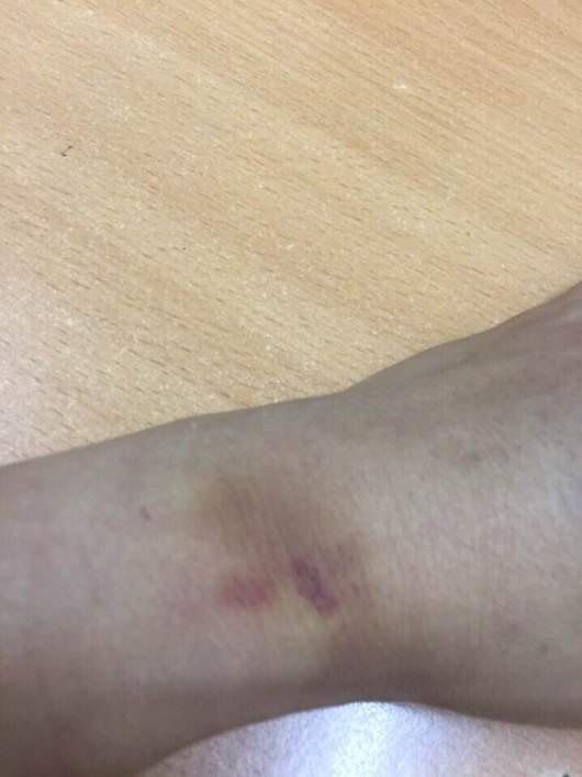 Bà Bình cho biết thêm: Sau khi bà Bình bị vặn hỏi về các giấy tờ của người đàn ông lạ mặt và lấy điện thoại chụp lại hình ảnh người đàn ông này thì chị bị anh ta quát: “Con kia mày xóa ngay cho tao”. Như Bà Bình trình bày trong đơn tố cáo thì bà Bình đã bị người đàn ông này giật điện thoại và bị hành hung, bà Bình bỏ chạy thì bị đuổi đến dải phân cách đường và bóp mạnh ở cổ tay khiến chị bị thâm tím. Lúc đó người dân thấy vậy đã đến can ngăn.