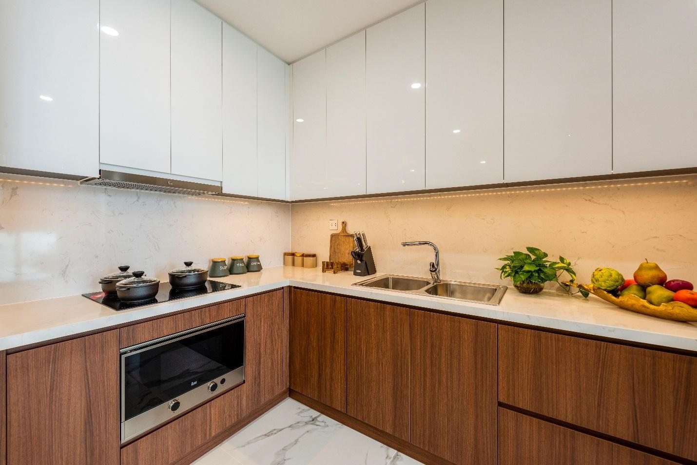 Không gian bếp lý tưởng dành cho bà nội trợ với cách bài trí khoa học, hài hòa về công năng sử dụng. Thiết bị nhà bếp đều là những thương hiệu nổi tiếng - đây là một trong những yếu tố để mang đến những bữa ăn ngon cho gia đình